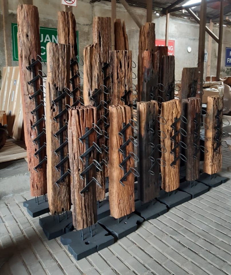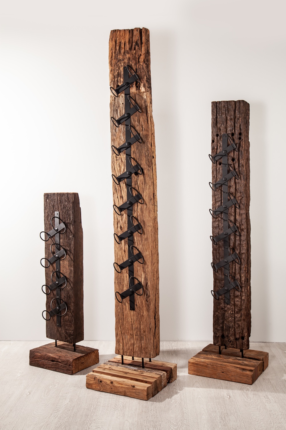 This rustic wine stand made of old recycled teak wood with iron wine holders, is a lmust-have for your home.