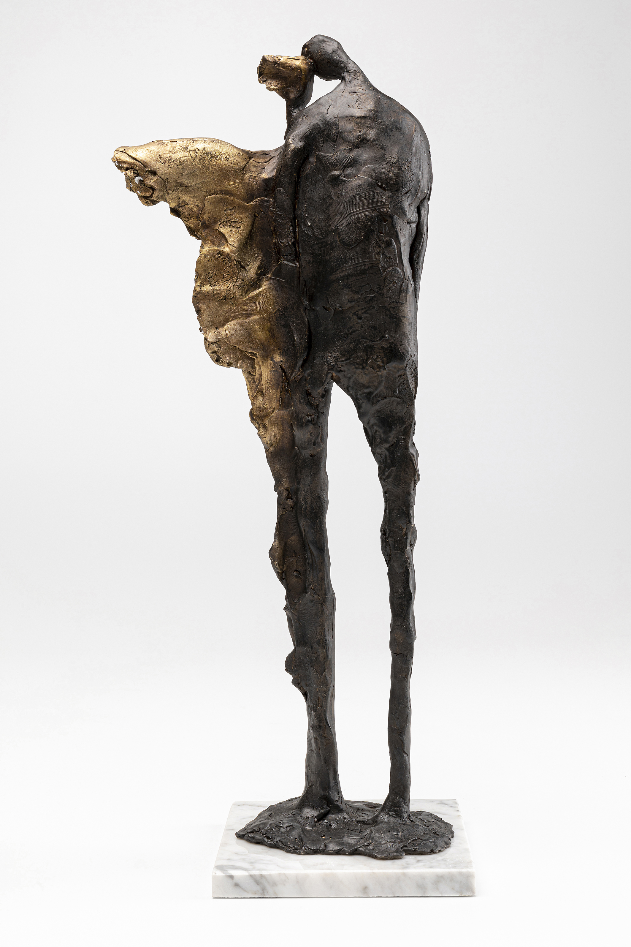 The beautiful decorative figure made of stable artificial stone on a noble base made of real marble exudes love and security.