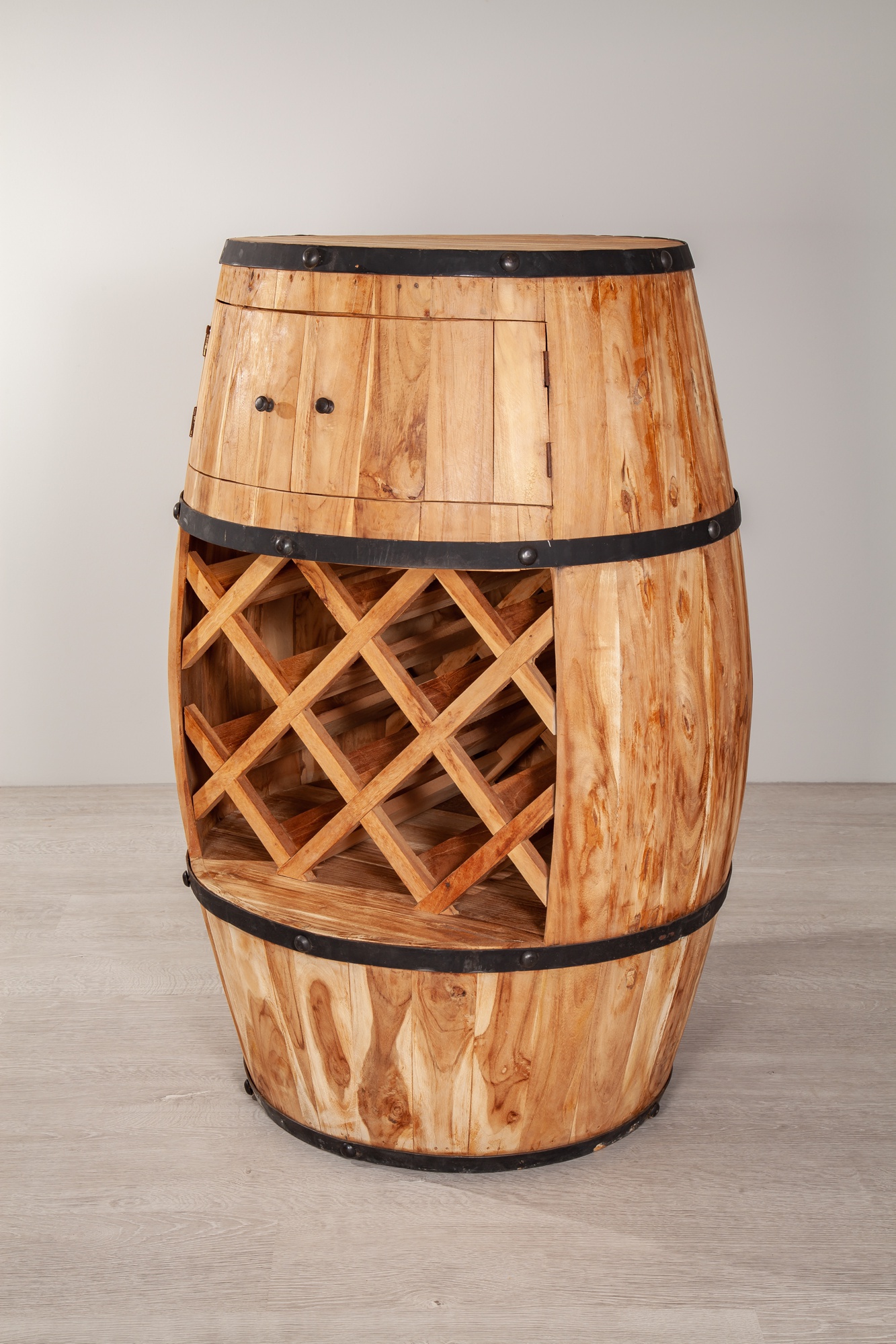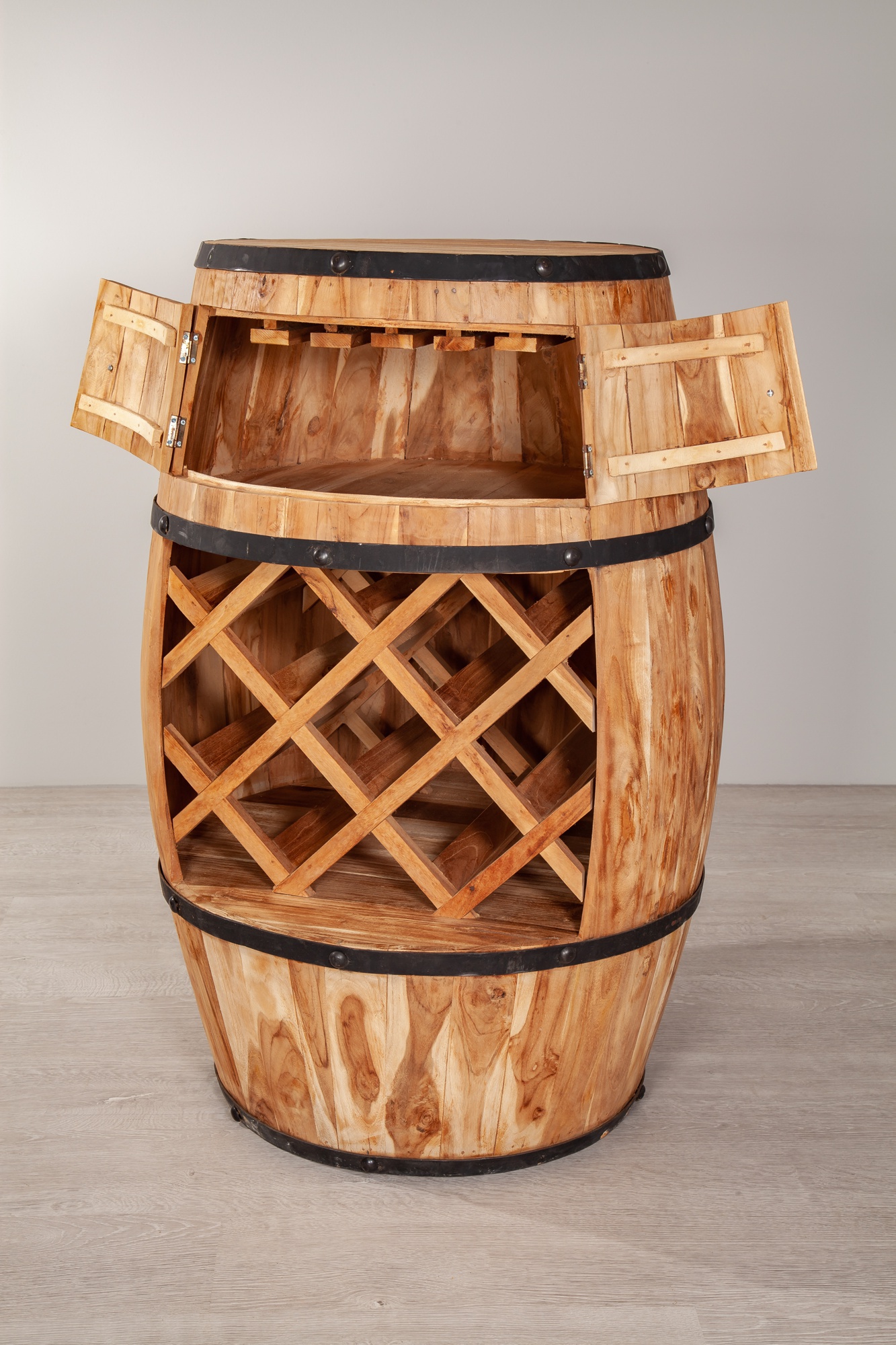 This handcrafted Barrel Bar made from teak wood is not just a winner at parties, it’s also a designer piece to decorate your home. At cosy get-togethers simply take out a bottle of red wine from the lower part and a glass from the upper part. Then there’s nothing standing in the way of a cosy evening.