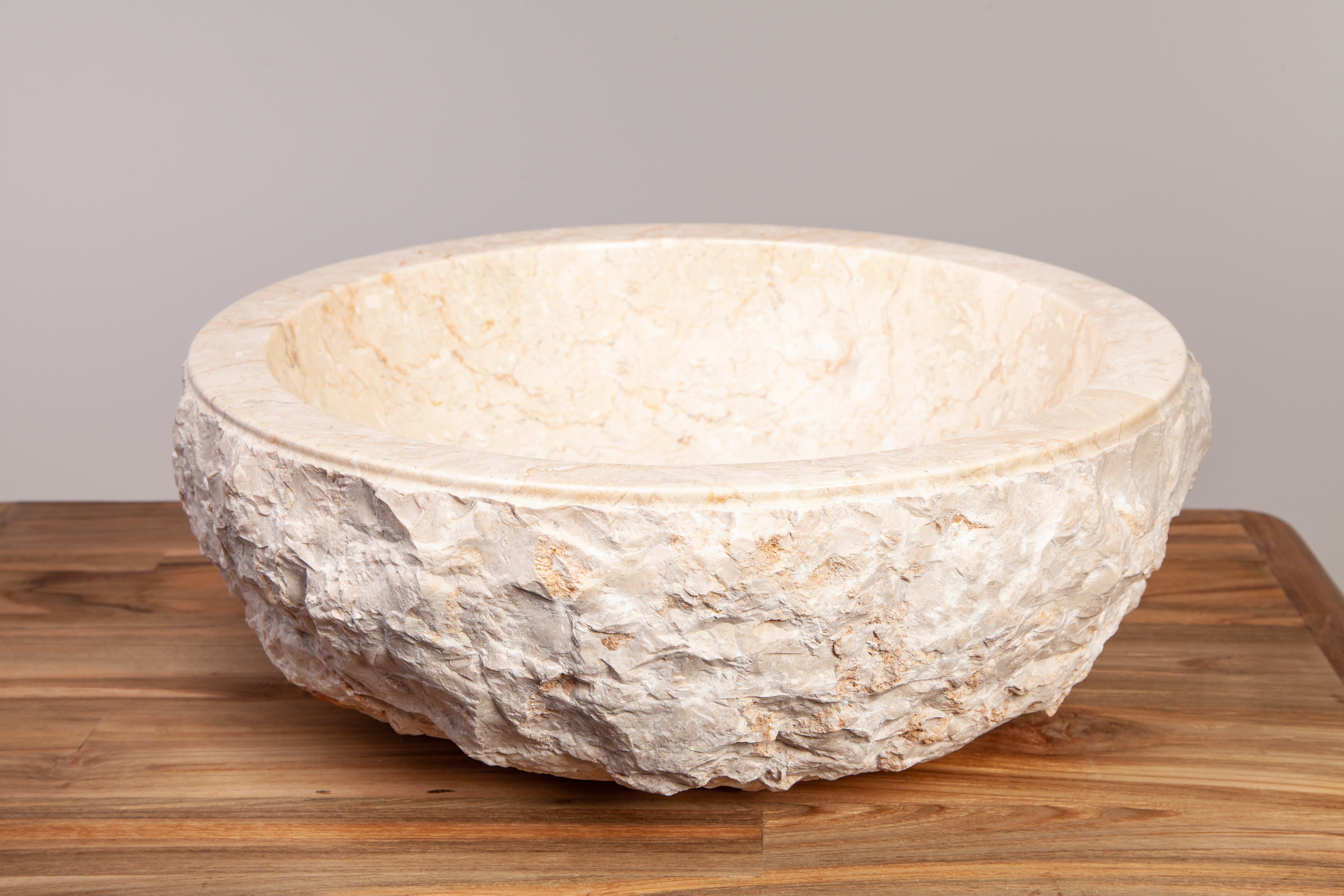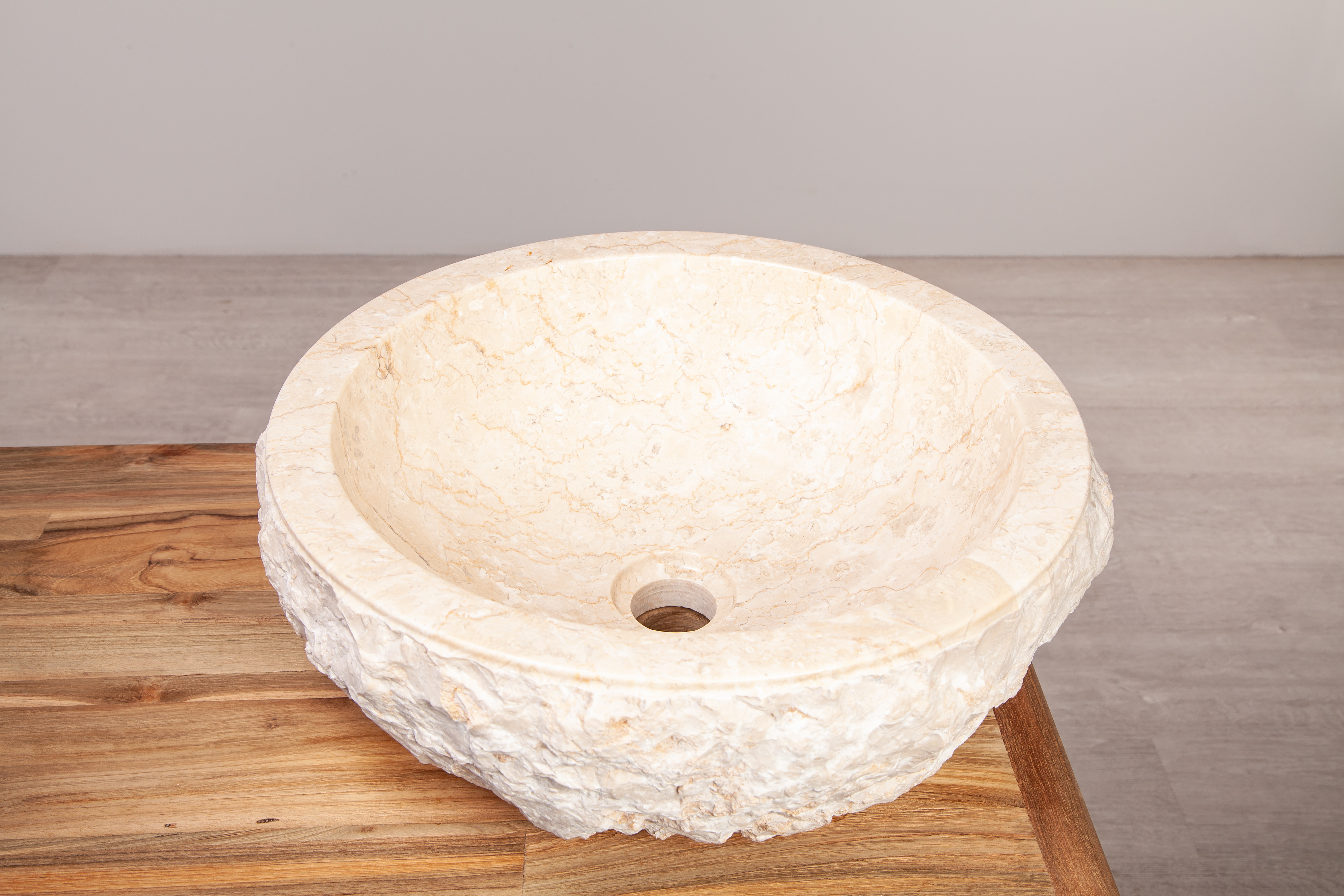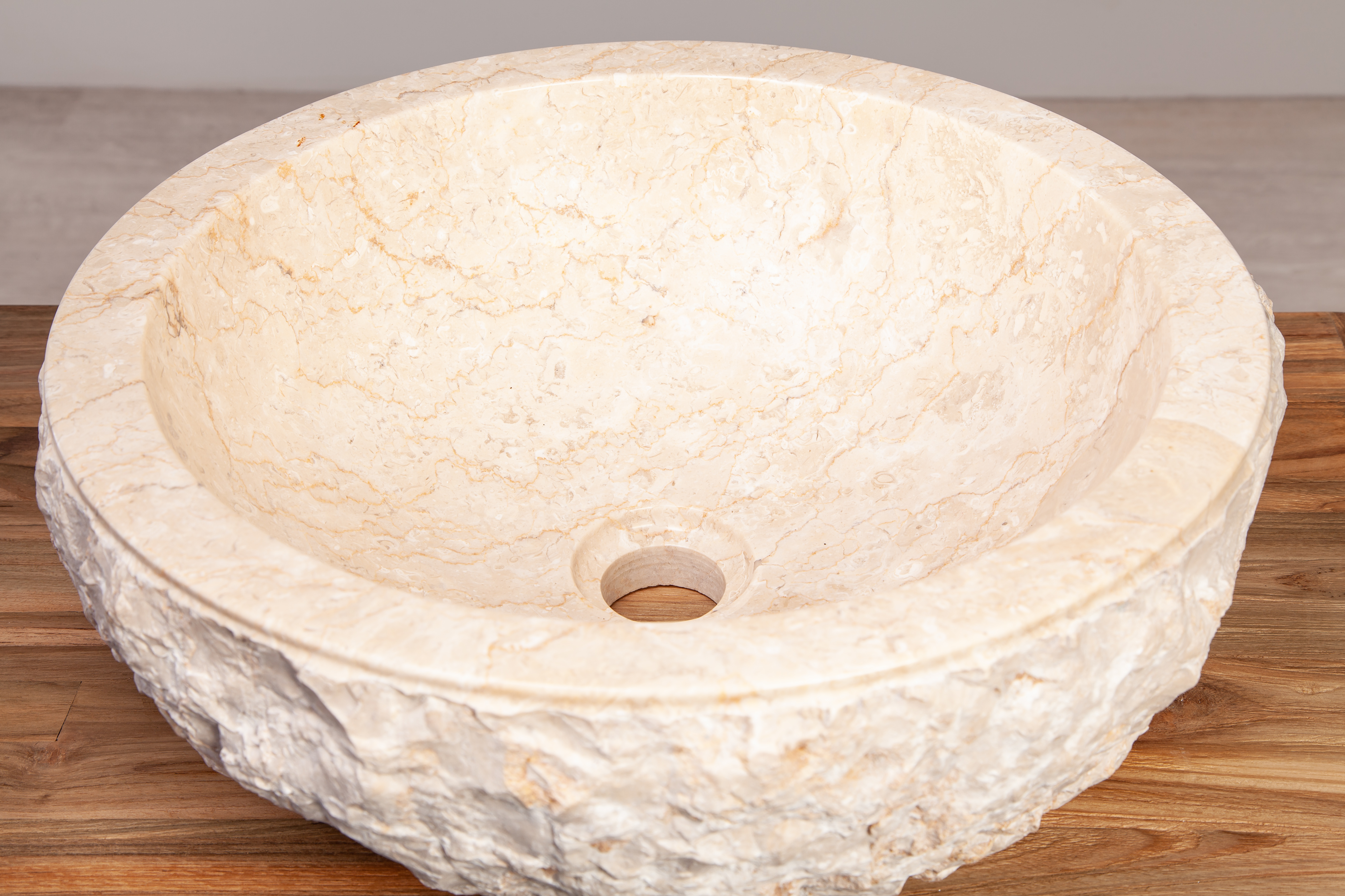 The marble basin is polished inside and left natural on the outside. A real eyecatcher amongst our washbasins.