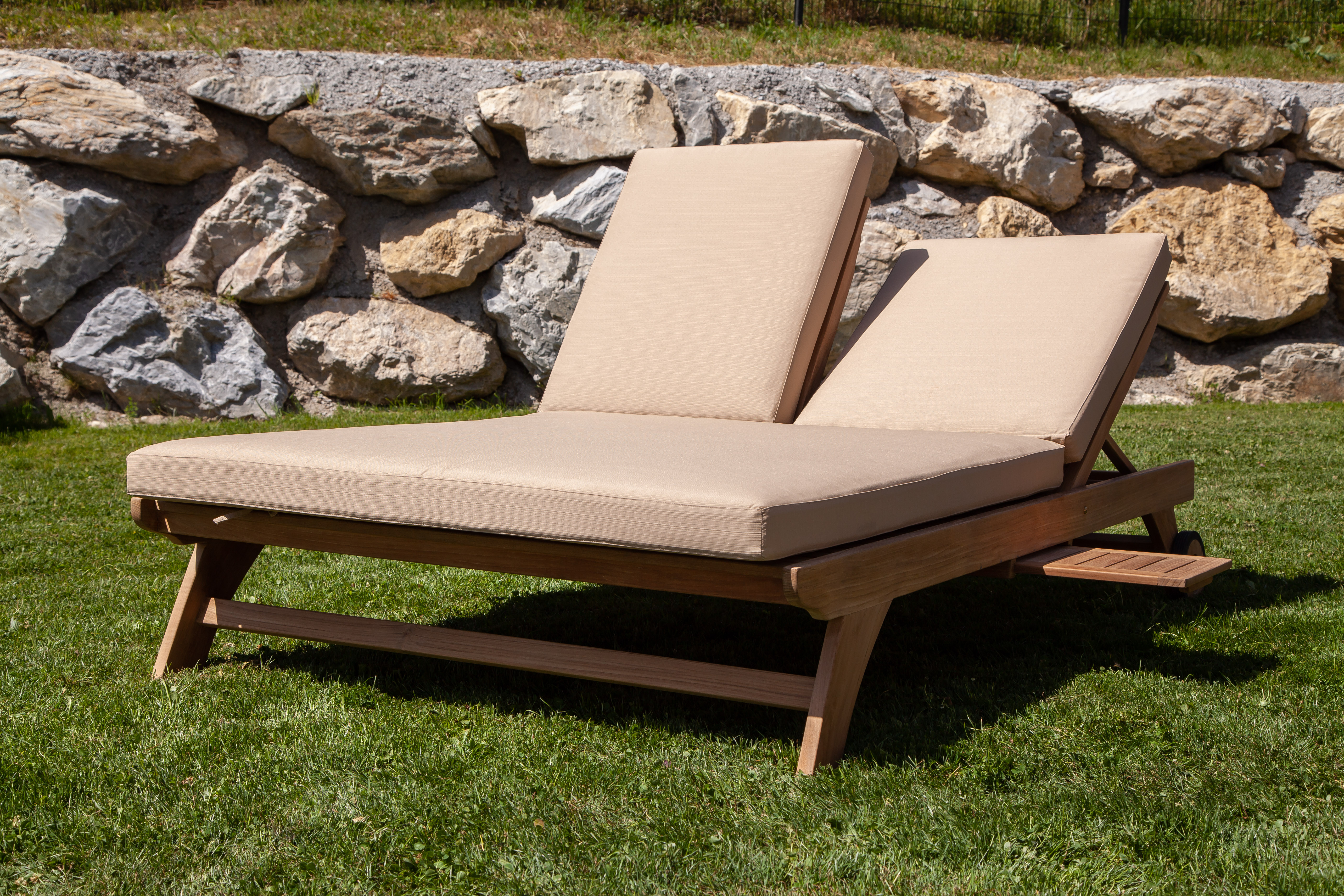 Simply unwind and enjoy time together as a couple. Thanks to its two wheels our Double Lounger Cordoba Big can be easily placed anywhere. Savour precious moments of peace and quiet! Due to its practical quick-dry mat you don’t need to store the cushions, just stand upright from time to time to air the inner foam. The back rest elements can be quickly and easily adjusted to 6 different levels! The covers can naturally be ordered in other colours!!