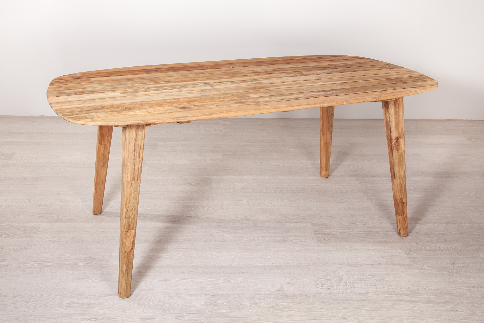 Our Table Danish, produced from recycled teak wood, is perfect for your terrace. It creates a feel-good atmosphere and due to its oval form counts as designer furniture and appears so elegant too.